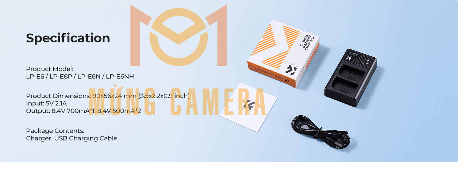 – Tương thích với các máy ảnh Canon EOS R5, EOS R6, EOS R, EOS 5D Mark IV, 5D Mark III, 5DS, 5DS R, 5D Mark II, 6D, 6D Mark II, 7D, 7D Mark II,90D, 80D, 70D, 60D, 60Da,… – Pin dung lượng cao 7.4V 2250mAh, được chứng nhận CE/RoHS/FCC – Bộ sạc giao diện kép Micro USB/Type C, hỗ trợ sạc tường, sạc xe hơi hoặc sạc điện thoại di động