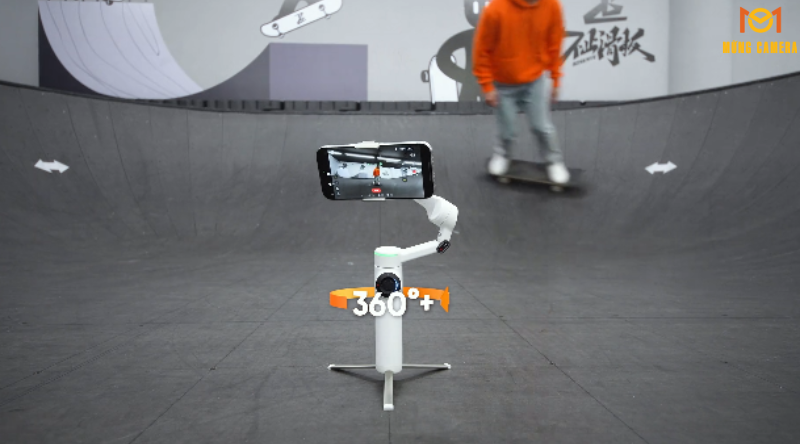 Insta360 Flow 2 Pro hỗ trợ 360° Tracking, cho phép xoay liên tục để theo dõi chủ thể mà không bị ngắt quãng. Điều này rất hữu ích khi quay thể thao, sự kiện trực tiếp hoặc các chuyển động vòng tròn.