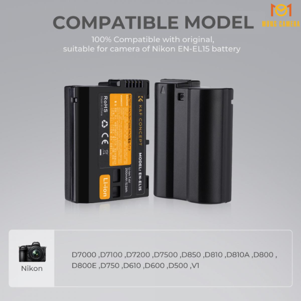 Pin K&F Concept được thiết kế theo đúng chuẩn kỹ thuật của pin Nikon EN-EL15, đảm bảo: