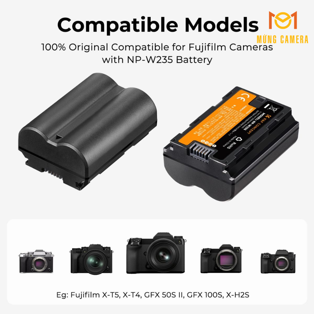 Pin K&F Concept NP-W235 được thiết kế theo chuẩn pin Fujifilm, giúp tương thích hoàn hảo với nhiều dòng máy ảnh.
